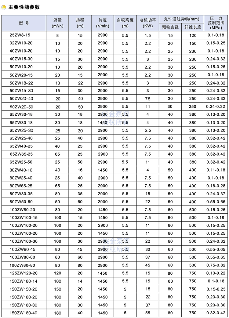 ZW型自吸式排污泵,是集自吸和無堵塞排污于一體,采用軸向回流的混式,并通過泵體.葉輪流道的獨特設計,即4-5米的清水自吸高度,泵前管路不需要加裝底閥和灌引水,可直接抽吸介