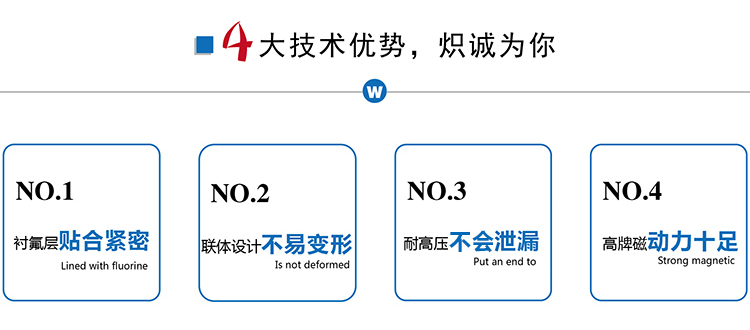ZMD襯氟自吸磁力泵是我公司新一代耐腐蝕自吸磁力泵,它不但集氟塑料磁力泵的優(yōu)點(diǎn),而且具有自吸功能、無(wú)泄漏,這是以往的所有氟塑料磁力泵不能達(dá)到的,因此,該系列泵一推出就受到了廣大用戶的歡迎。該系列泵可廣泛適用于化工、有色金屬冶煉、農(nóng)藥、制酸制堿、造紙、酸洗工藝、稀土分離、電鍍、電子、化成箔、卸酸堿等行業(yè)或工作流程,是目前磁力泵品種中結(jié)構(gòu)新穎的產(chǎn)品之一,且高效節(jié)能、安全實(shí)用。