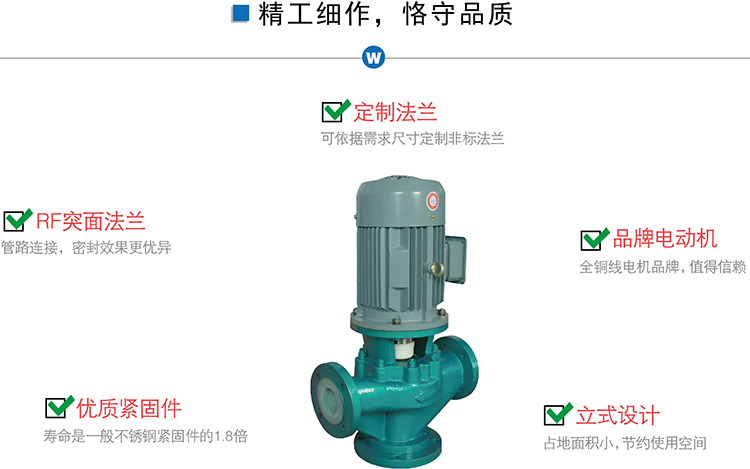 氟塑料管道泵又稱其為塑料管道泵、襯氟管道泵、四氟管道泵、耐腐蝕管道泵、襯塑管道泵、立式離心泵、立式管道泵,氟塑料管道泵是單吸單級(jí)離心泵的一種,因其進(jìn)出口在同一直線上,且進(jìn)出口口徑相同,仿似一段管道,可安裝在管道的任何位置故取名為管道泵(又名增壓泵)。氟塑料離心泵另有:IHF-D短支架型、IHF-L長支架型FSB-D短支架型、FSB-L氟塑料離心泵。